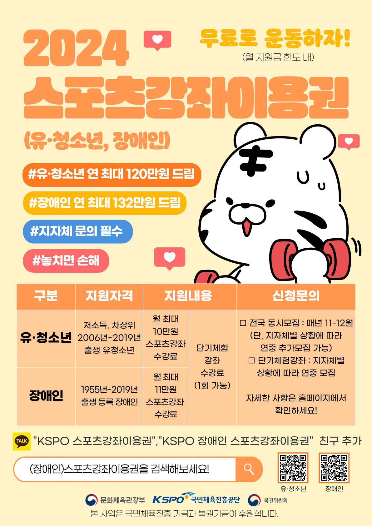 ✓ 장애인 스포츠 강좌 이용권은 현금으로 지급되지 않습니다