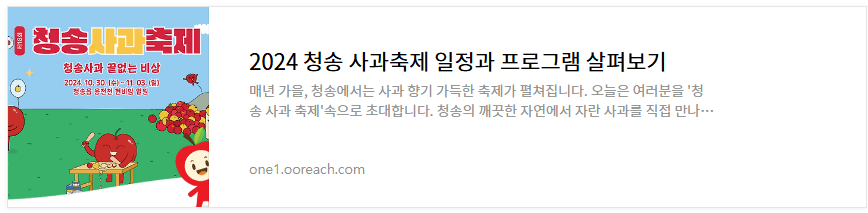 2024 청송 사과축제 일정과 프로그램이 궁금하시다면, 아래 링크에서 확인해 보세요